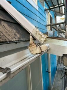 屋根板金部や破損箇所:塩害対策としてGLカラー鋼板を差し込み補強